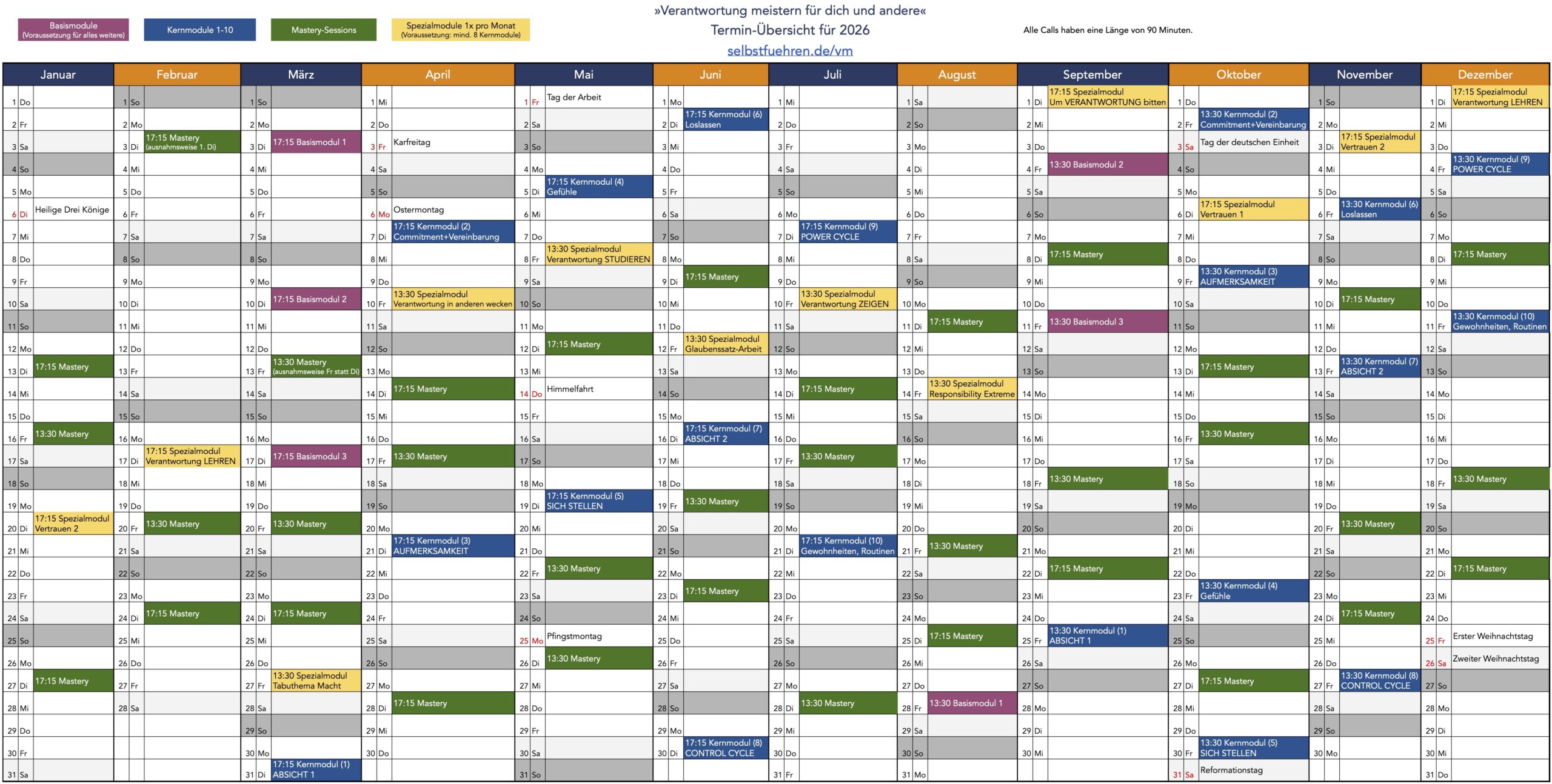 - Kernmodule im Wechsel mit Mastery vom 8. September bis 18. Dezember 2026, danach weiterhin Mastery und Spezialmodule